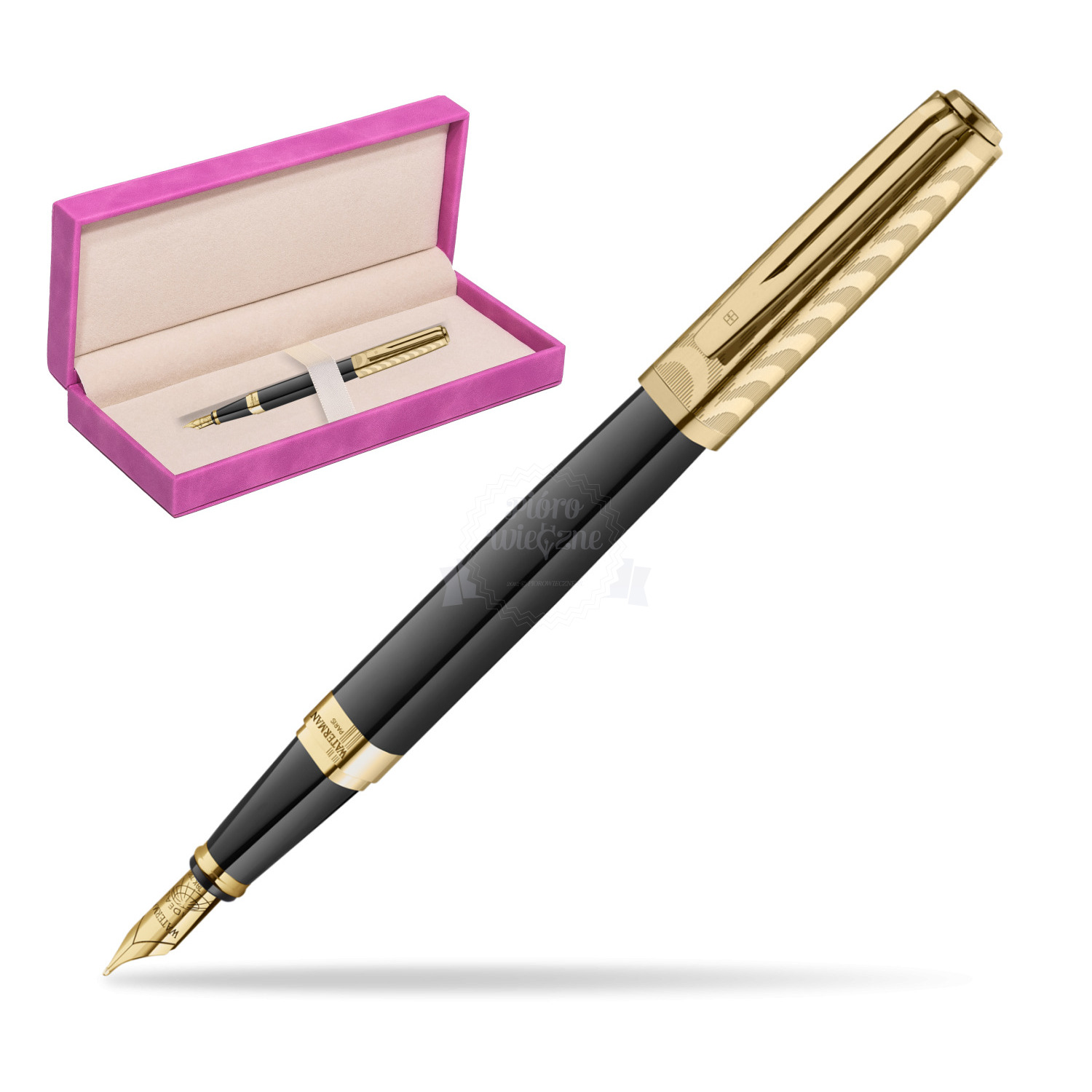 Nib: Made of 18k gold, complemented by classic Waterman details such as the signature split clip and globe emblem.
