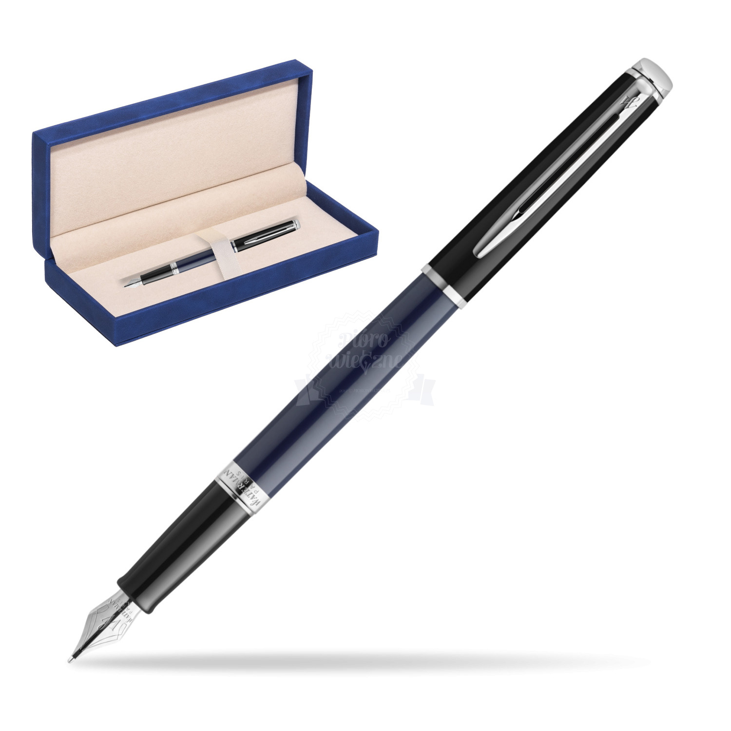 Waterman HÉMISPHÈRE COLOR-BLOCK BLACK-BLUE Fountain Pen in suede box navy blue HÉMISPHÈRE