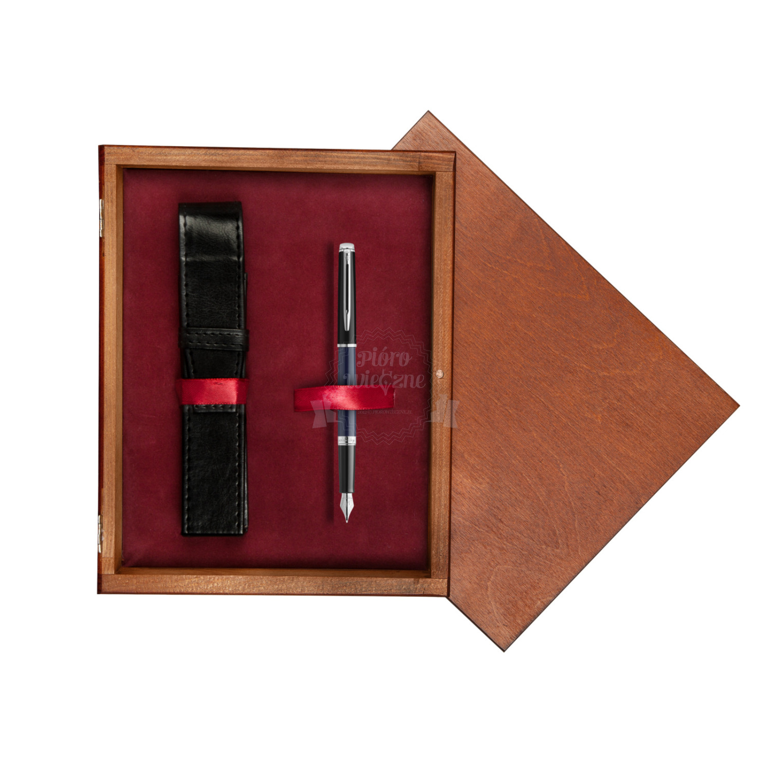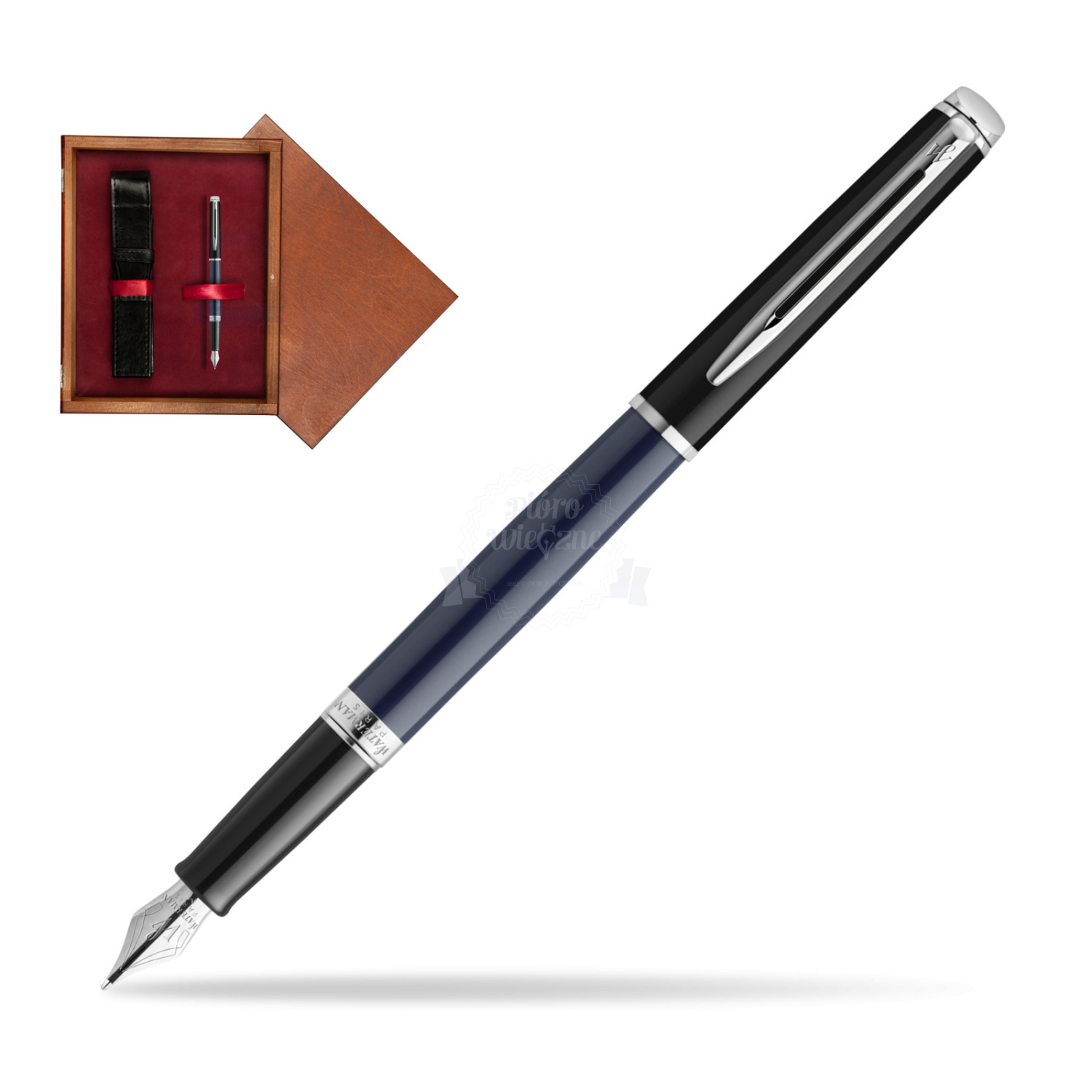 Waterman HÉMISPHÈRE COLOR-BLOCK BLACK-BLUE Fountain Pen in single wooden box Mahogany Single Maroon HÉMISPHÈRE