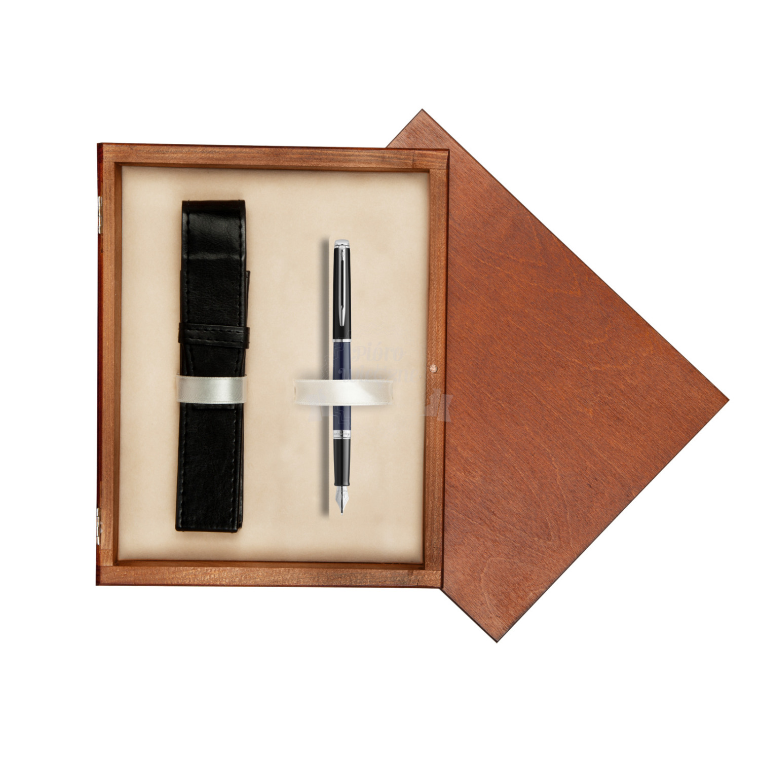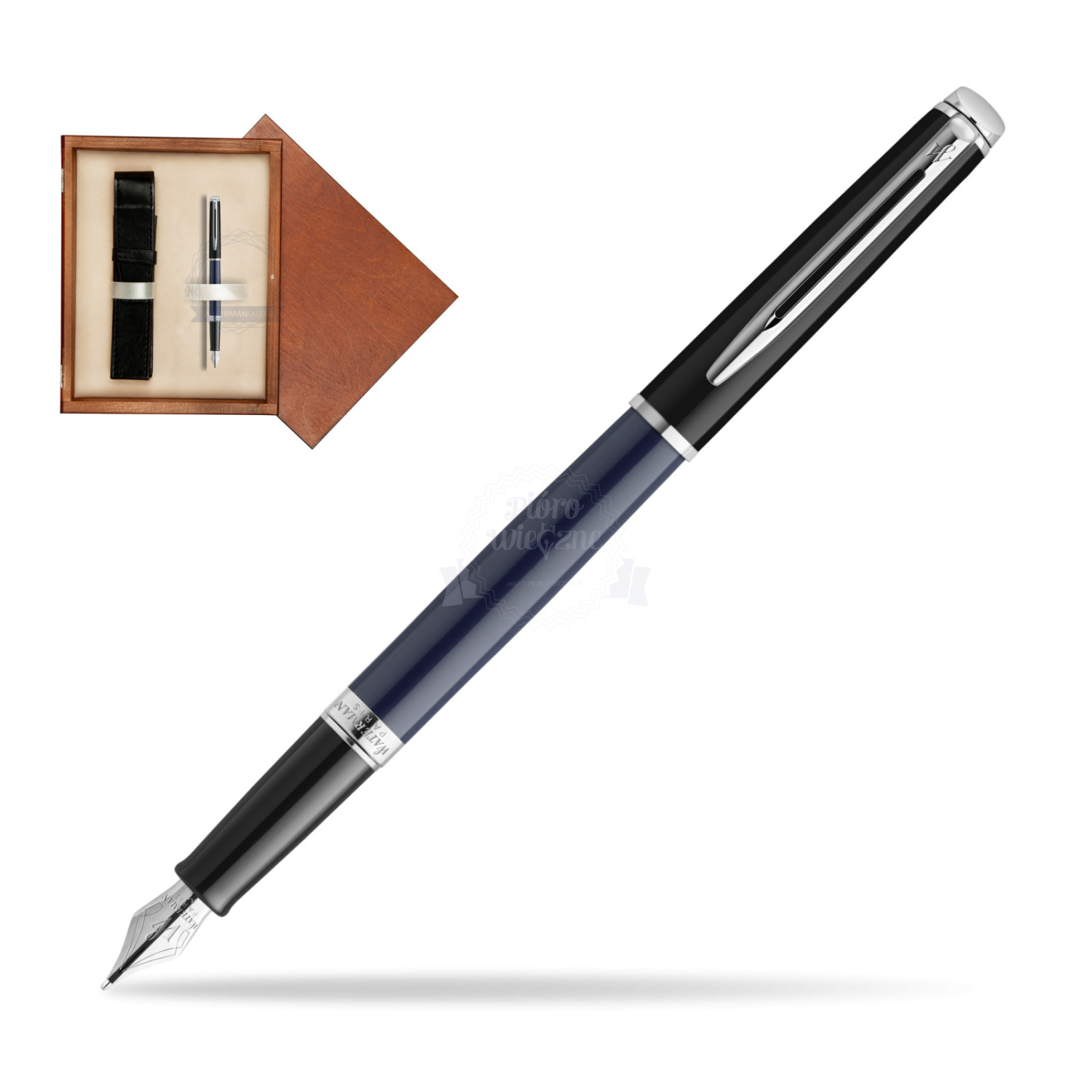 Waterman HÉMISPHÈRE COLOR-BLOCK BLACK-BLUE Fountain Pen in single wooden box Mahogany Single Ecru HÉMISPHÈRE