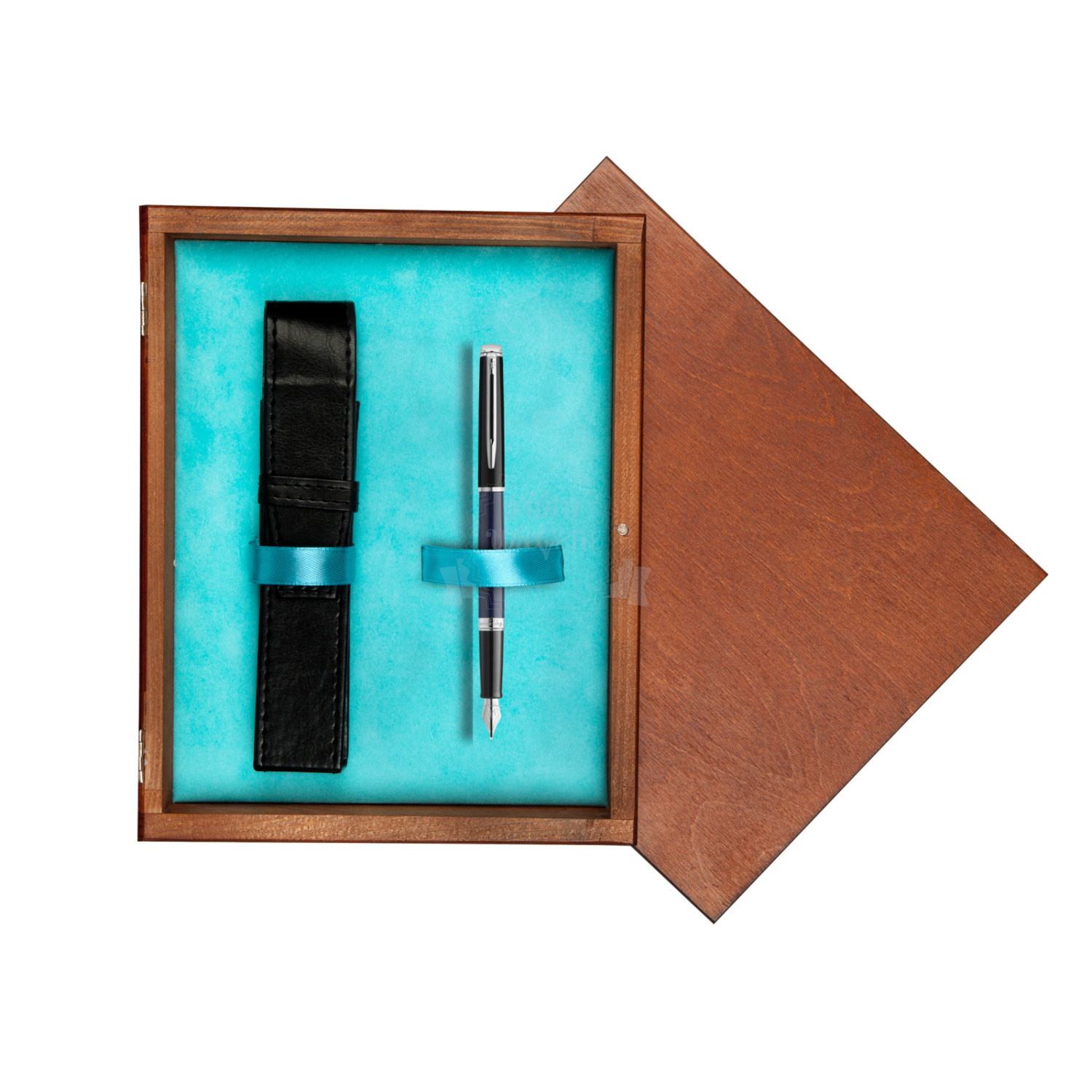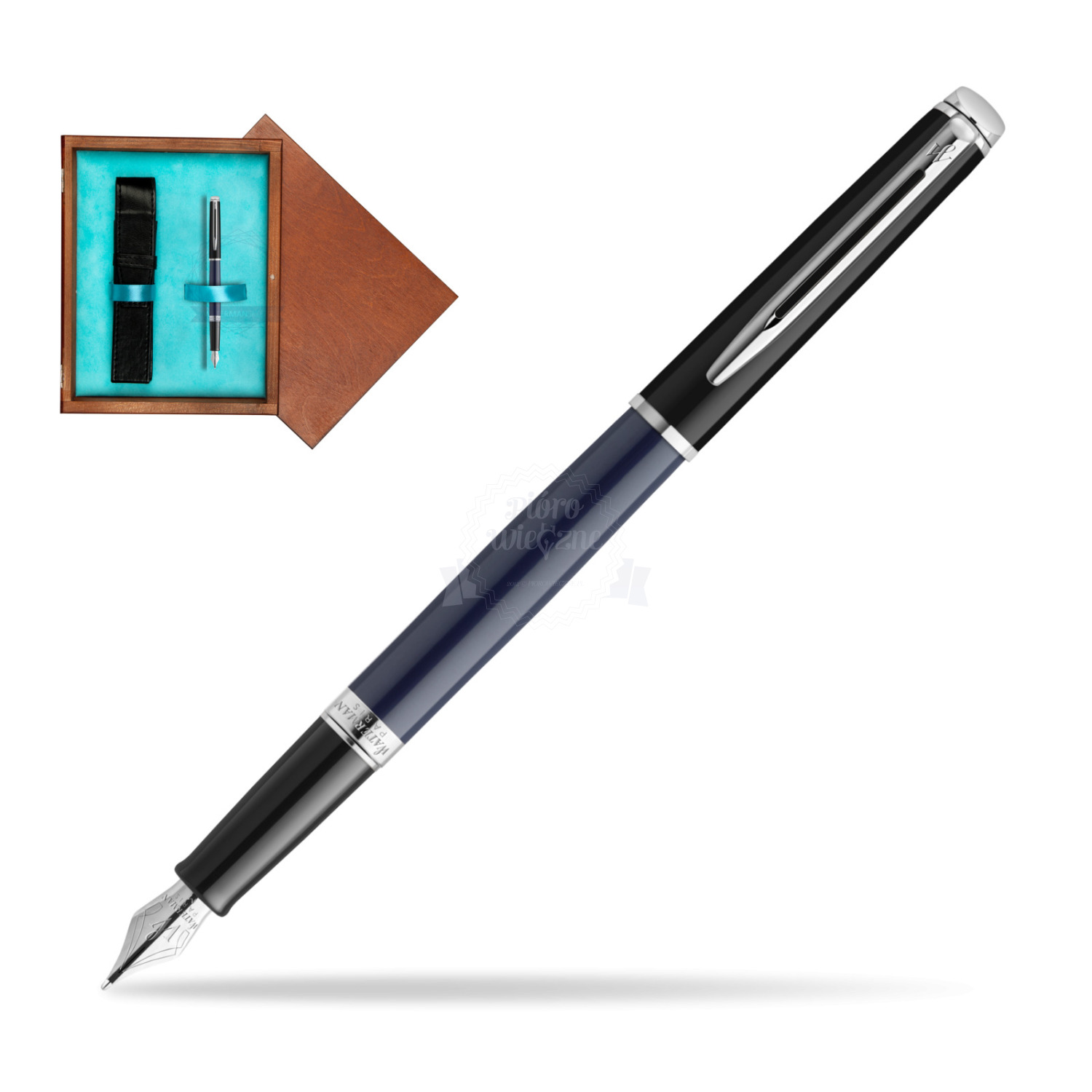 Waterman HÉMISPHÈRE COLOR-BLOCK BLACK-BLUE Fountain Pen in single wooden box Mahogany Single Turquoise HÉMISPHÈRE