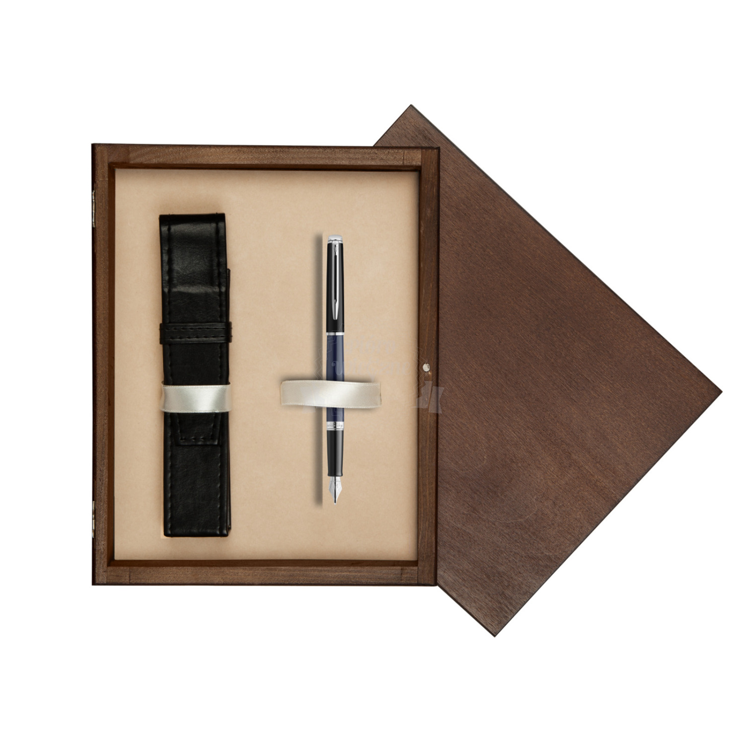 Waterman HÉMISPHÈRE COLOR-BLOCK BLACK-BLUE Fountain Pen in single wooden box Wenge Single Ecru HÉMISPHÈRE